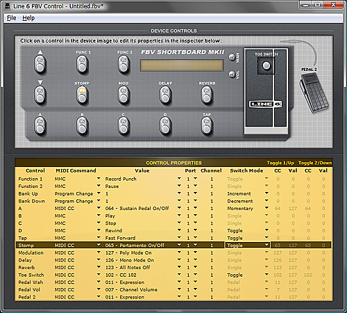 さらに、「FBV Controlソフトウエア」(こちらも無料ダウンロード)を使えばFBVをMIDIコントローラーとして利用できるようになる。「POD Farm」などのソフトウェア・アンプシミュレーターをはじめとしたソフトウェアをコントロールする用途にも転用可能というわけだ。スイッチやペダルにMIDI CCやプログラムチェンジなどを割り当て、ハンズフリーでソフトウェアを操作するのもオツなものだ。