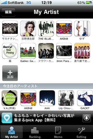 iPhone用音楽無料アプリ「歌手☆コレ」のMy Artistは十人十色、同じ画面の人は2人といないことだろう。そこにはみんなの音楽への想いやこだわりが表われるもの。