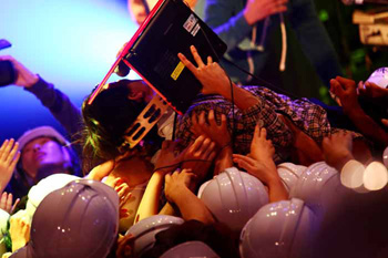また、この日のライブは来場者全員に、の子がよく着用している“ネ申”ヘルメットが入場時に配られ、それをかぶることが義務づけられるという奇妙なものに。さらにこの模様はスペースシャワーTVのほか、