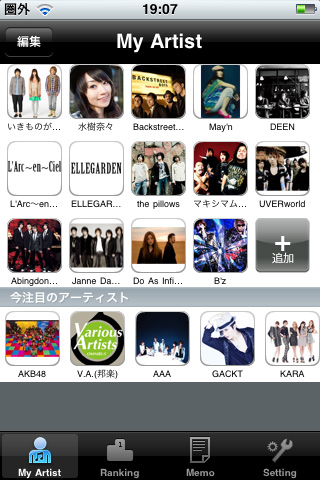 iPhone用音楽無料アプリ「歌手☆コレ」のMy Artistは十人十色、同じ画面の人は2人といないことだろう。そこにはみんなの音楽への想いやこだわりが表われるもの。