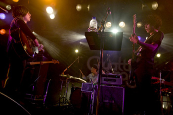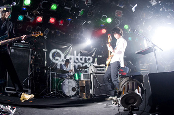 続けて最新アルバム収録曲、そして2011年1月12日(水)にリリースされる新曲「VANISH」が披露され、大山純(G)の加入により4人編成となって奥行きの広がった彼ららしいサウンドを発揮する。続いてホリエアツシ(Vo、G、Key)の鍵盤が印象的な「SIX DAY WONDER」や、中毒性が滲む「BERSERKER TUNE」は新たなるメンバーを迎えたことでアップテンポにリアレンジされており、同じ曲でこうも違って聴こえるものか、とそのアレンジ力に驚かされる。