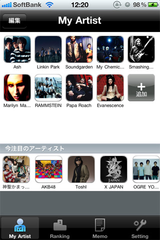 iPhone用音楽無料アプリ「歌手☆コレ」のMy Artistは十人十色、同じ画面の人は2人といないことだろう。そこにはみんなの音楽への想いやこだわりが表われるもの。
