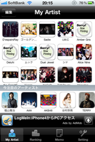 iPhone用音楽無料アプリ「歌手☆コレ」のMy Artistは十人十色、同じ画面の人は2人といないことだろう。そこにはみんなの音楽への想いやこだわりが表われるもの。