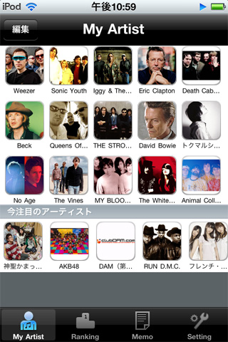 iPhone用音楽無料アプリ「歌手☆コレ」のMy Artistは十人十色、同じ画面の人は2人といないことだろう。そこにはみんなの音楽への想いやこだわりが表われるもの。
