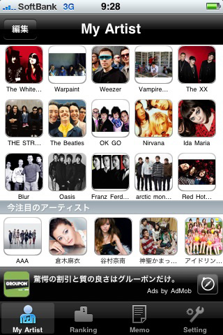 iPhone用音楽無料アプリ「歌手☆コレ」のMy Artistは十人十色、同じ画面の人は2人といないことだろう。そこにはみんなの音楽への想いやこだわりが表われるもの。
