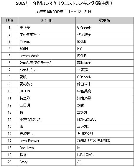 2010年「年間カラオケ・リクエストランキング」結果発表