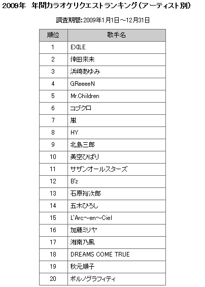 2010年「年間カラオケ・リクエストランキング」結果発表