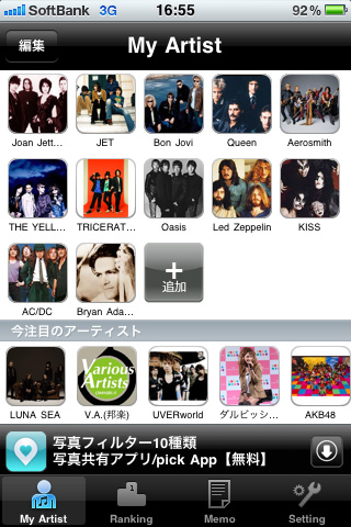 iPhone用音楽無料アプリ「歌手☆コレ」のMy Artistは十人十色、同じ画面の人は2人といないことだろう。そこにはみんなの音楽への想いやこだわりが表われるもの。