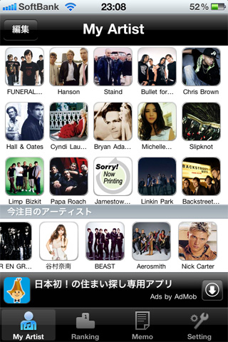 iPhone用音楽無料アプリ「歌手☆コレ」のMy Artistは十人十色、同じ画面の人は2人といないことだろう。そこにはみんなの音楽への想いやこだわりが表われるもの。