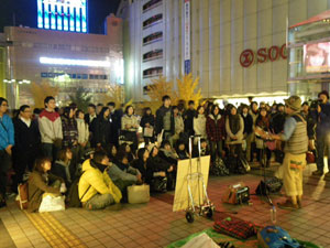 そのように劇的に状況が変わる中、12月1日に行なった八王子駅前での恒例の路上ライヴには、ダイスケが現われる前から徐々に人が集まりだした。そして予定していた17時過ぎにダイスケが登場し、路上ライヴの機材をセッティングし始めると、その数はさらに増えてすぐに100人を越えた。