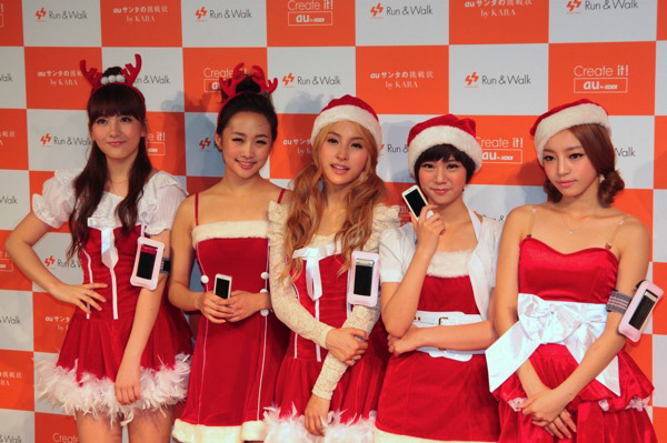 スポーツサポートサービス「au Smart Sports Run&Walk」のキャンペーンガールを務めるKARAが、12月13日、原宿にあるKDDI デザイニング スタジオにて<「auサンタの挑戦状」 KARAスペシャルライブ>を行なった。