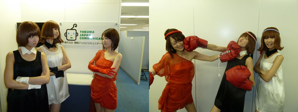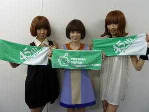 最後はサッカーのユニフォーム交換よろしく、衣装を交換して撮影会まで行なった。しかもその撮影会の最中に、徳間ジャパンコミュニケーションズが設立45周年にあたることをスタッフから聞かされ、3人揃ってそのピーアールにも一役買う事を誓い合ったそうだ。