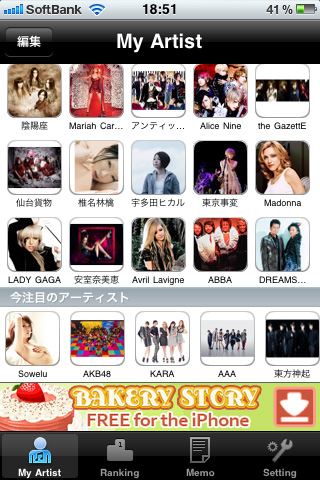 iPhone用音楽無料アプリ「歌手☆コレ」のMy Artistは十人十色、同じ画面の人は2人といないことだろう。そこにはみんなの音楽への想いやこだわりが表われるもの。
