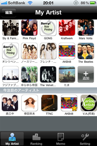 iPhone用音楽無料アプリ「歌手☆コレ」のMy Artistは十人十色、同じ画面の人は2人といないことだろう。そこにはみんなの音楽への想いやこだわりが表われるもの。