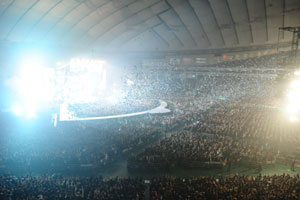 そして“アンコール”代わりの「きよしこの夜」の大合唱に応えて、メンバーが再びステージに登場。「サンキュー。メリークリスマス。スゴイね、ほんとにお前らスゴイよ。俺たちは5人でグルーヴしてるけど、お前たちは5万人でグルーヴしてるんだね。まだどうなってしまうか分からないバンドだけど…。次の曲は、みんなへ」(RYUICHI)といって「I for You」を演奏。さらに「今夜、みんなにNEW SONGを届けます。数あるNEW SONGの中から、今夜はピッタリの曲を選んできました」といって新曲「Days of Repetetion」が披露された。INORANがアコギを奏でるミドル・テンポのこの楽曲が、今後どのような形でリスナーに届けられるのかはまだ分からないけれど、新曲が複数誕生していることがこの日、はっきりと証明されたのだ。