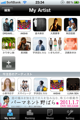 iPhone用音楽無料アプリ「歌手☆コレ」のMy Artistは十人十色、同じ画面の人は2人といないことだろう。そこにはみんなの音楽への想いやこだわりが表われるもの。