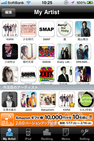iPhone用音楽無料アプリ「歌手☆コレ」のMy Artistは十人十色、同じ画面の人は2人といないことだろう。そこにはみんなの音楽への想いやこだわりが表われるもの。