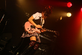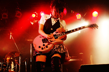 ギャップ萌え。そんな表現がふさわしい最大の場面は2度目のアンコールで起こった。普段のリハーサルではメタルを中心に様々なカバーで遊んでいるらしいが、このライブでmixxが選んだのはトリヴィアムのナンバー。ASUKAがデス・ボイスで攻撃するという意外な一面を発揮した。SAKIも頭の振り過ぎで“サザエさんのような髪型(ネーミングby ASUKA)”になって、テクニカル・フレーズを次々に決める。涼しい顔して手数の多いドラミングをするのはJACKSON。そしてトドメを刺したのはラスト・ナンバー「ヘヴィメタル・スイーツ」だった。オープニングのリベンジとばかりにSAKIはスウィープやタッピングなど音源以上にちりばめ、ASUKAとJACKSONは完全燃焼する勢いで飛ばす。メタル・ファンも多いオーディエンスを圧倒していった。