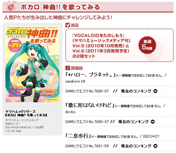 なお、プレゼントはヤマハミュージックメディアから出版されている『VOCALOIDをたのしもう』Vol.5(2010年10月発売)とVol.6(2011年3月発売予定)を2冊セットで5名にプレゼント。