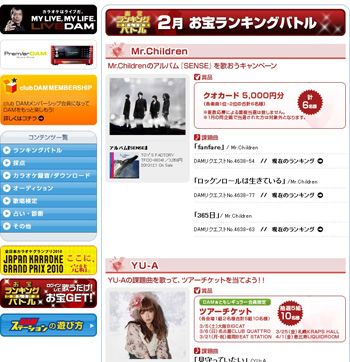 課題曲を歌うだけで貴重なプレゼントが当たるという、カラオケDAMの「お宝ランキングバトル」、2月企画が公開された。