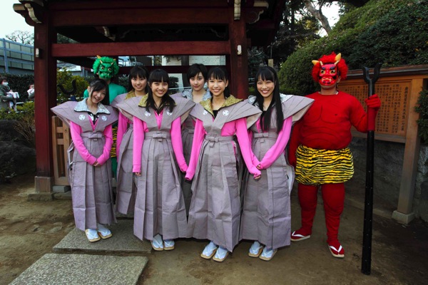 アイドルユニットももいろクローバーが、節分の日である2月3日、東京・文京区の護国寺でミニライヴ&豆まきを行なった。