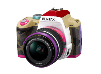 このスペシャルコラボレーションモデルだは、「PENTAX K-r」をベースに、これまでの一眼レフにはなかった色とりどりのパーツと迷彩柄のグリップが組み合わされたポップでスタイリッシュなカラーリングが強烈な存在感を放っている。また、起動時には液晶モニターにBONNIE PINKのロゴが映し出されるなど、細かいところでもコラボ感にこだわっているあたりは、BONNIE PINKファンの心をくすぐるところだ。