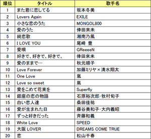 「愛」「恋」が付くラブソング カラオケリクエストランキング