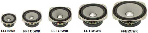 「FF-WK」シリーズはこれまでのFFシリーズの構造を全面的に見直し、新たに10cm口径をラインアップに加えたバスレフ専用設計のフルレンジユニット。8、10、12、16、20cmの5種類のユニットが用意される。新抄紙方法「2層抄紙コーン」をはじめ、リッジドーム形状アルミ合金センターキャップ、ポケットネックダンパーを採用しさらなる高音質化を図っている。これにより明快でリアルな音質はそのままに力感溢れる低域とキャラクターを感じさせない高域再生を実現している。