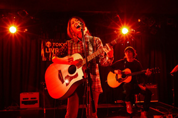 恒例のプレゼントタイムを挟み、トリのアーティストDadaD(ダーダーダー)の登場。ボーカルKateとギターのShige、そしてギターのサポートという3人編成のライブだったが、Kateの艶っぽい声のトーンと、曲のポップさがマッチングして、独特のおしゃれポップ感が印象的だった。英語詞の響きはまさに洋楽の雰囲気で、カフェなどでライブを見ているようなテイスト、浮遊感のある演奏がとても個性的だった。