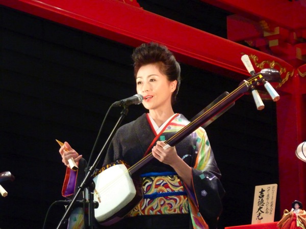 桃の節句が近いこともあり雛人形が飾られていた江戸舞台。そんな雛人形たちが会場を華やかな空間へと変える中、長山洋子は、着物姿で艶やかに登場した。4歳の頃、父親が通っていた民謡教室に行ったことがきっかけで民謡に心惹かれ、9歳の時に民謡教室の先生の勧めで三味線を始めた長山。イベントでは30年前に父親に買ってもらった愛着ある三味線で腕前を披露した。