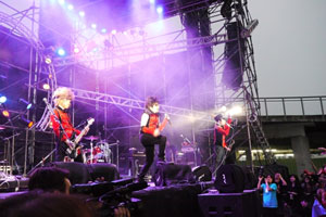 2回目のMCでは、haderuとhidekiがライヴ直前に考えた北京語でのコントを挟み込んだのだが、これが予想以上の大ウケ! さすがである。ヘヴィなバンドサウンドでありながら、口ずさめるキャッチーさを武器とする楽曲と、さすがと感じる絶妙なトークの面白さを持ち合わせているのは彼ら以外に見当たらない。