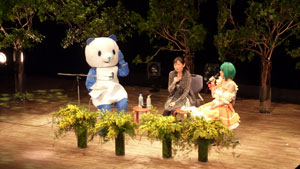 さて、後半は銀色夏生と、『マクロスF』のランカ・リーのコスプレ衣装に着替えたk-k(中島愛ファン)、そして中国から船で渡りこの日、日本に到着したばかりという謎のパンダによるトーク・コーナー。3人(2人+1匹?)は事前に寄せられたファンからの質問に答えていく形でフリー・トークを展開。哲学的な話あり、恋バナあり、軽い話題あり。3人の肩肘張らないトークを聴いていると、まるで銀色の自宅に遊びにいき、銀色親子が気楽におしゃべりしているのを横で聴いているような錯覚にも陥り、それはすなわち観客である自分も“つれづれ”の世界に入り込んだような感覚で、なんともフシギ楽しい気分になった。何より銀色の自由で何ものにもとらわれない言葉の数々が、時に刺激的であり、時にヒーリング作用ももたらし心地よかった。