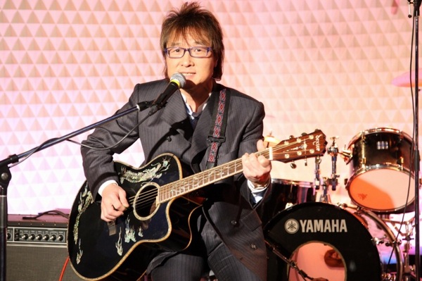 “おやじバンド”の後はゲストのRICKY(廣田龍人)氏が登場。アコースティックギターによる弾き語りでさわやかにイベントをしめくくった。“日本のジョン・レノン”と呼ばれるRICKY氏だけに、この前日が誕生日にあたる故ジョージ・ハリスンにちなんで、「ヒア・カムズ・ザ・サン」「ホワイル・マイ・ギター・ジェントリー・ウィープス」の2曲、そして客席からのリクエストに応えて、「ミスター・ムーンライト」「ヘルター・スケルター」などビートルズ関連の3曲を熱唱。瞬時に客席を一体化させるパフォーマンスはさすがの一言だった。