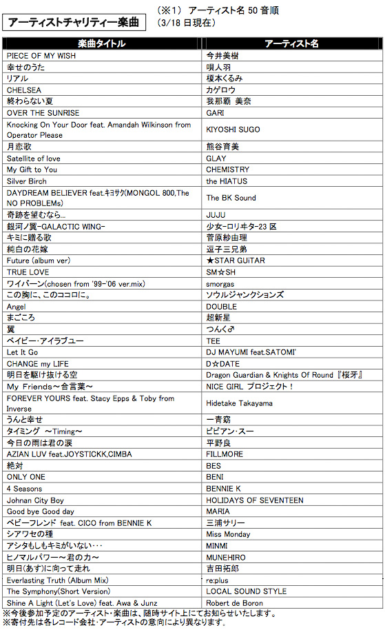 ◆東北地方太平洋沖地震にまつわる音楽・アーティスト関連情報ページ