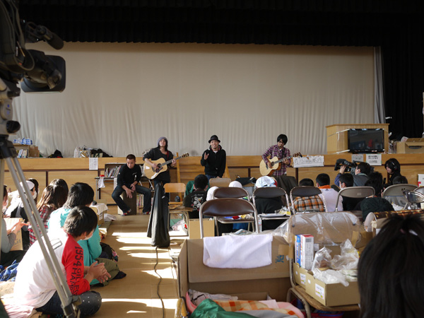 かりゆし58、気仙沼市の中学校で弾き語りライブ