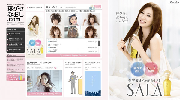 さて、そんなカネボウ「SALA」ブランドが、ダメージ補修ができる寝グセ直しミスト「SALA トリートメントサラ水」の新発売に合わせて、4月30日までの期間限定キャンペーンサイト「SALA 寝グセなおし.com」を立ち上げている。
