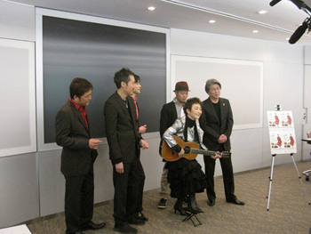 会見では、加藤登紀子が3月17日にUstreamを通じて配信した新曲「今どこにいますか」をギターの弾き語りで披露、前川真悟はかりゆし58の「手と手」を歌い、登壇者全員でジョン・レノンの「イマジン」を歌って会見は終了となった。