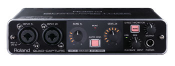 「QUAD-CAPTURE」は、パソコンを使って手軽に高音質なレコーディングができるオーディオ・インターフェース。ボーカル用マイクやギター、シンセサイザーなどの電子楽器を直接接続可能。USB2.0に対応、2系統のアナログ入出力とデジタル入出力(ステレオ)を装備する。アナログとデジタルあわせて4イン/4アウトというわけだ。