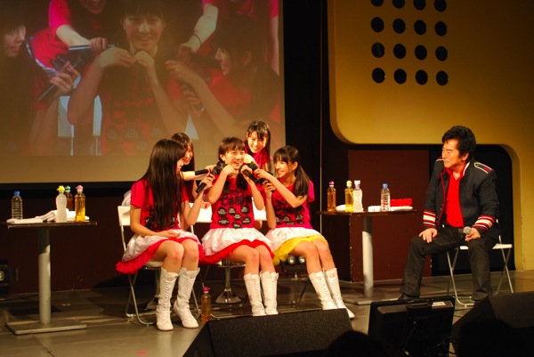 トークは、水木一郎がアニソン事情を語ることからスタート。「シンガポールでアニソンのライヴをすると、人口約400万人のうち1%が来てくれる。」という話を聞いて驚くももクロちゃん。そこで山里が突然、「百田さん、400万人の1%って、何人?」とリーダー・百田夏菜子に問いかけると、夏菜子は「ちょっと待って! わかんないわかんない! 0.8? 調べてくる!」と、ももクロちゃんたちはステージ上で一気にパニックに。水木一郎は、そんなももクロちゃんたちをまるで自分の孫かのように温かく見守っていた。