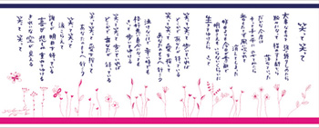 この<スマイルライブ>は、全国各地で観覧無料のフリーライブを行ないながら、募金活動として代表曲「笑って笑って」の歌詞を自身で描きデザインした「奥華子チャリティー手ぬぐい」を製作、この販売による収益金を震災の義援金として全額寄付するという。
