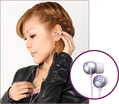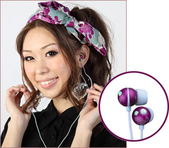 深紫のヘッドホンには和柄のバンダナをヘアバンド代わりに巻いて、普通のカジュアルなコーディネートにちょっとした変化を。柄物と合わせるときは、柄の色の中にある色から色をチョイスすれば失敗しないよ。