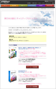 インターネットは、3月に発生した東日本大震災で被災された方々を支援するためのチャリティプロジェクト第3弾として、オンライン販売を利用したソフトウェアのチャリティ販売を期間限定で実施している。