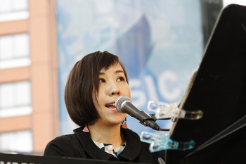 初日5番目の出演は安藤裕子。雨がしとしと降り始めた六本木ヒルズアリーナのオーディエンスは、それでも皆帰らず安藤の登場を待ちます。ステージに現れると同時に沸き起こった歓声の中、くるりのカバー「ワールズエンド・スーパーノヴァ」をはじめ、震災後に書き下ろしたチャリティーソング「地平線まで」などを独特の歌声で、六本木ヒルズアリーナに響かせていました。