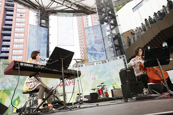 続いて大歓声の中キリンジが登場、キャロル・キングのカバー「YOU’VE GOT A FRIEND」からスタート。4曲を披露してくれました。心地よい午後の風の中、キリンジの2人の穏やかな歌声が超満員の六本木ヒルズアリーナに響き渡りました。