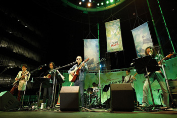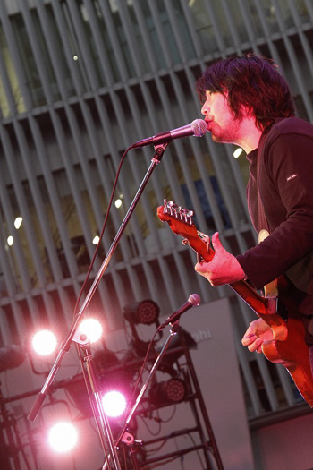 いよいよ今年のTOKYO M.A.P.Sも大詰め。だんだんと暮れてきた六本木ヒルズアリーナに曽我部恵一率いるサニーデイ・サービスが登場しました。当初の発表では、曽我部恵一のソロでの出演でしたが、メンバーがそろって、サニーデイ・サービスでの出演がかないました。六本木ヒルズアリーナは相変わらず超満員、アリーナが見下ろせるベランダにもたくさんの人が集まって、サニーデイ・サービスのサウンドに酔いしれていました。