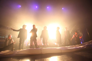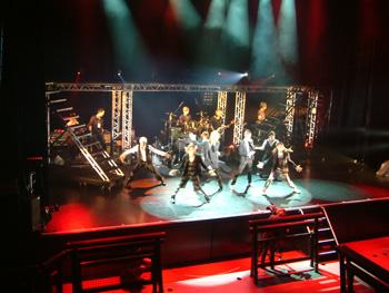 危険を顧みず、見栄えを優先。彼らのプロ根性が見えるセットなのだ。3歳からモダンバレエをやっていた中塚皓平は、このトラスの上で、踊るシーンが何回かある。「怖くないんですか?」とたずねると、「確かにあそこで踊るのは自殺行為ですね。幅1mちょっとくらいしかないですから結構危ないです。でも、こういうセットは慣れてますから大丈夫ですよ」とニッコリ。