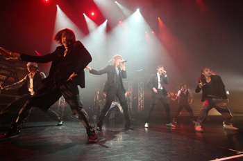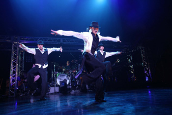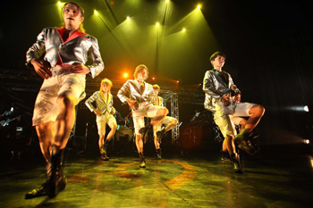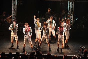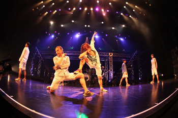 東山:僕たちは毎シーズンに一回ずつ、一週間くらいに渡って大きなステージをやっていて。あとはディナーショーを年に二回。時間があるとダンサーの5人がダンサーに徹するようなライヴをやっていたり。その隙間隙間で個々の活動もしてきました。僕ならミュージカル、森新吾は振り付けの仕事だったり。そんな風に活動してきました。今日のライヴは、誰が主役ということでもなく、みんなが主役ということで作っているんですね。中盤の“SWAN JAZZ”のところでは、それぞれのダンスのスペシャルなところを見せたりしていますよね。お笑いの要素も混ぜたりしながら。あれは3年くらい前に作ったものの中から抜粋したんです。以前は打ち込みで音楽を作って、それに合わせて踊っていたんですけど、今回は初めて生バンドでやってみた。今日の公演は、今まで僕たちがやってきた公演の中から馴染みのあるものを選んで構成しているんです。色んなライヴを見ている人は、“こんなライヴの形もあるんだ”って思ってもらえるんじゃないかなと思いますね。歌う人がいてバックダンサーが出てきてっていう感じではなく、7人全員が主役っていう。