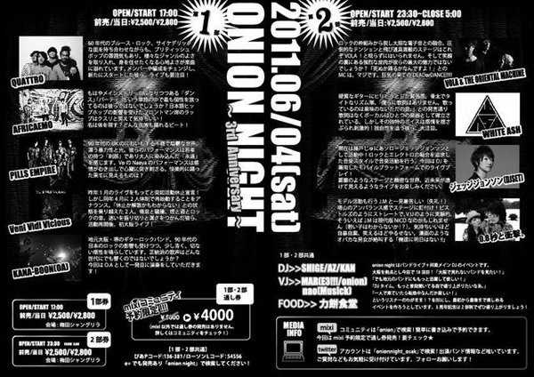 <onion night>3周年パーティーに、VOLA、QUATTRO、veniら豪華9組登場