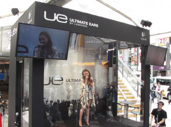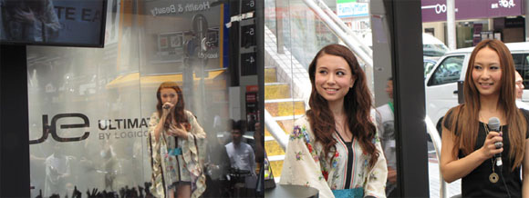 この新製品のお披露目となったのが「ロジクール Ultimate Ears × May J. サイレントLIVE@渋谷109」。ステージ上に設けられた透明パネルで仕切られたブース内でMay J.がヒット曲「GARDEN」、久保田利伸作曲の「君のとなりに」の2曲を歌いあげるのだが、そこに聞こえるのはボーカルなしのバックトラックのみ。道行く人は立ち止まり不思議そうな顔でステージを覗き込む。なかなかシュールな光景が繰り広げられていた。実はこれが「サイレントLIVE」たるゆえん。歌が聞けるのは、会場にセッティングされたUE100を装着している報道関係者だけなのだ。その音は、遮音性の高さもあり渋谷の街中にいることさえ忘れてしまう、まさにスタジオで聴いているようなハイクオリティなサウンドだ。