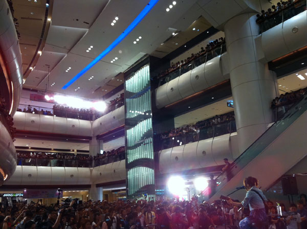 すでに香港での人気は絶大なものとなっているYUIだけに、初の公式渡航となった今回は行く先々で黒山の人だかりができたほどの熱烈歓迎を受けた。そしてYUIが2曲を弾き語りで披露したショッピングモールでのイベントでは、現地のスタッフが「こんなに人が来ているのは見たことがない」と証言するほどの盛り上がりを見せたという。